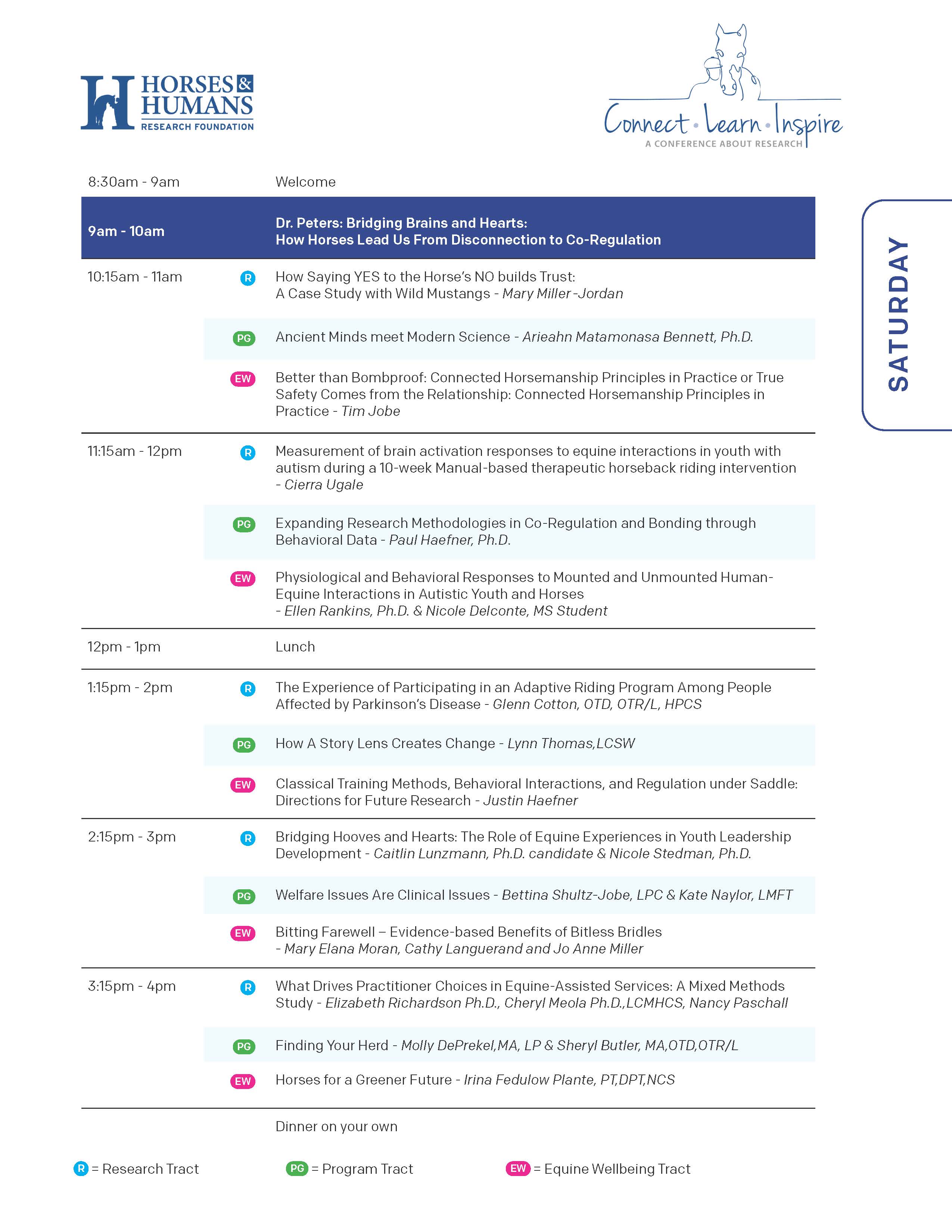 SCROLL DOWN FOR HOTEL LINK/INFORMATION Join Horses and Humans Research Foundation in Kissimmee, FL on February 28 - March 1, 2026 for an inspiring 2-day event that brings together HHRF’s supporters, researchers and the EAS community to celebrate and share innovations in research that support the power of horse-human interactions across an array of disciplines. This thought-provoking and informative event includes exciting presentations led by innovators in the industry and networking opportunities among a national community of industry experts. We are thrilled to announce Dr. Stephen Peters, Psy.D, ABN will be joining us as our keynote speaker again in 2026! Proceeds from the event support HHRF’s mission to expand the impact of research around horse-human interactions. Join HHRF in Orlando, FL for our 2026 Annual Conference: Connect, Learn & Inspire!